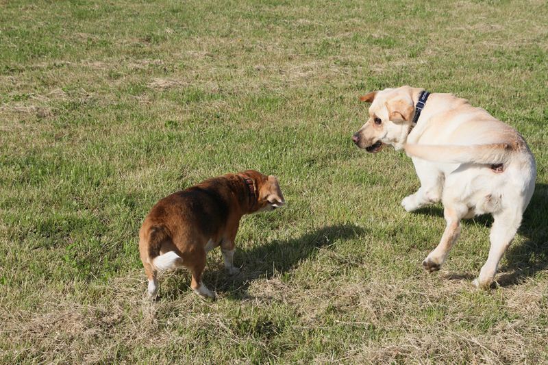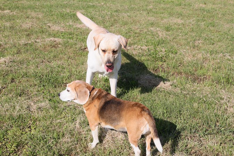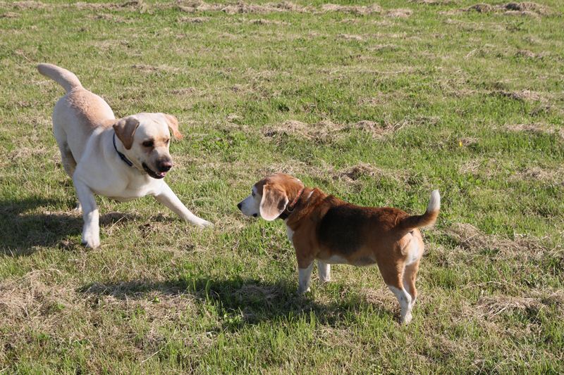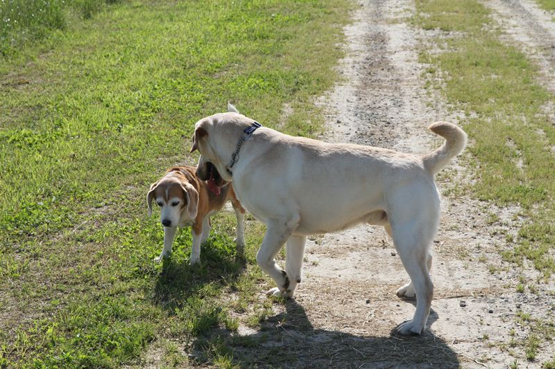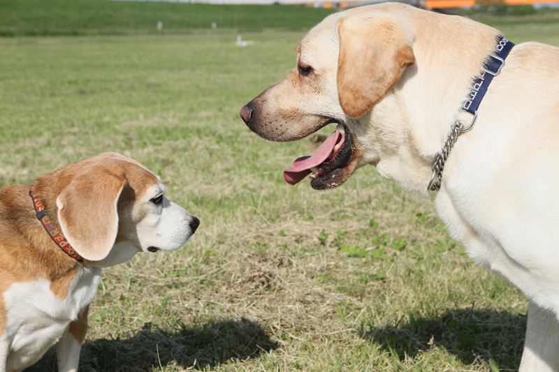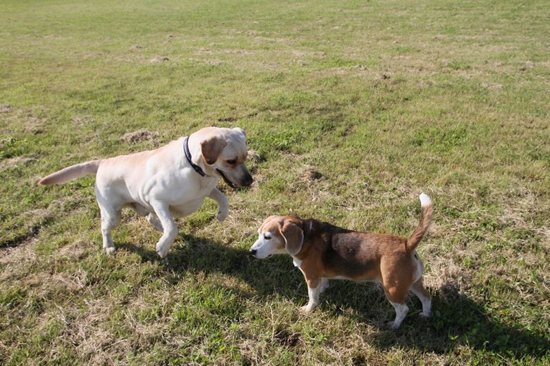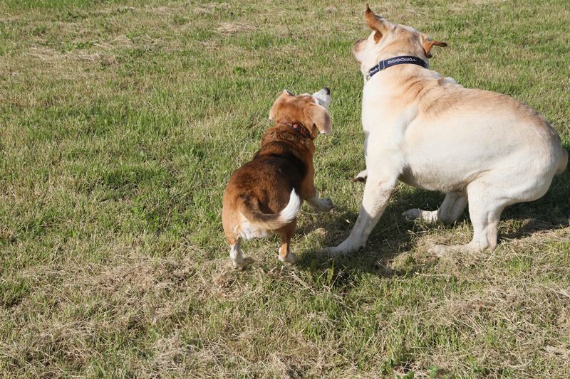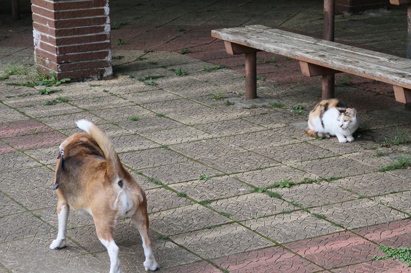 夕方はあけぼの山を散歩。にらみ合うお二人さん。 |