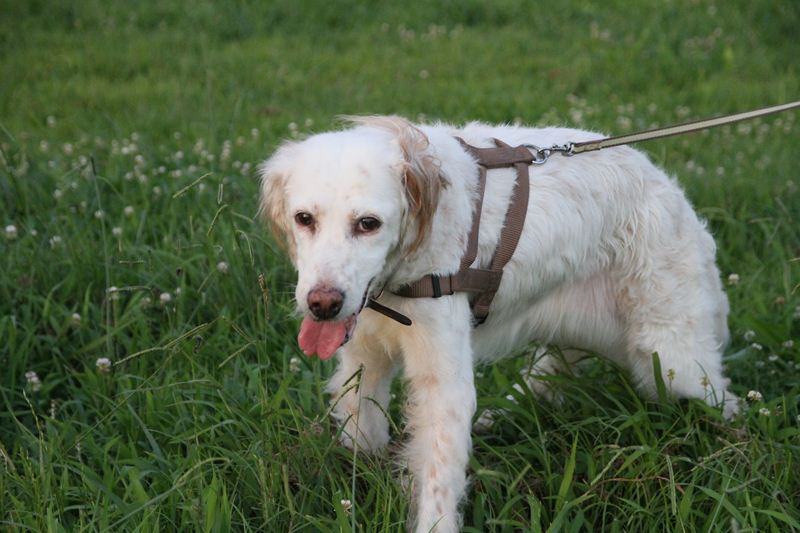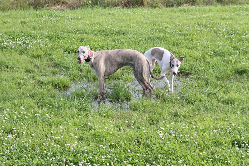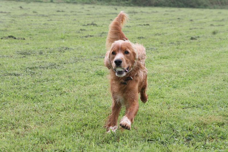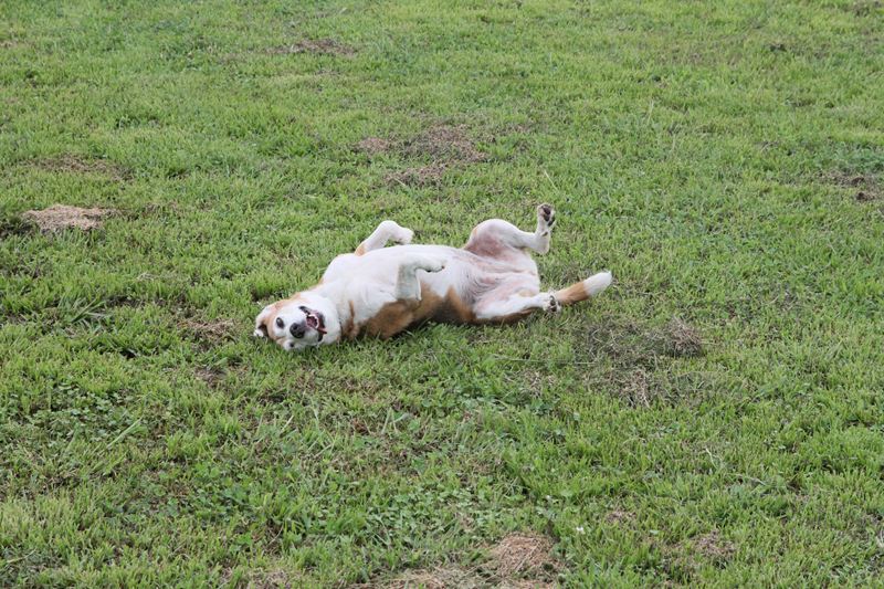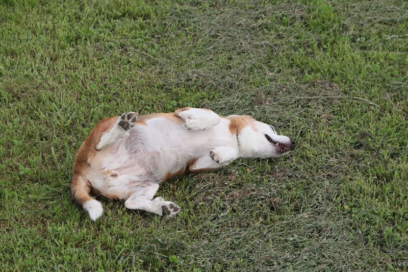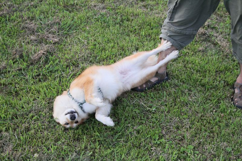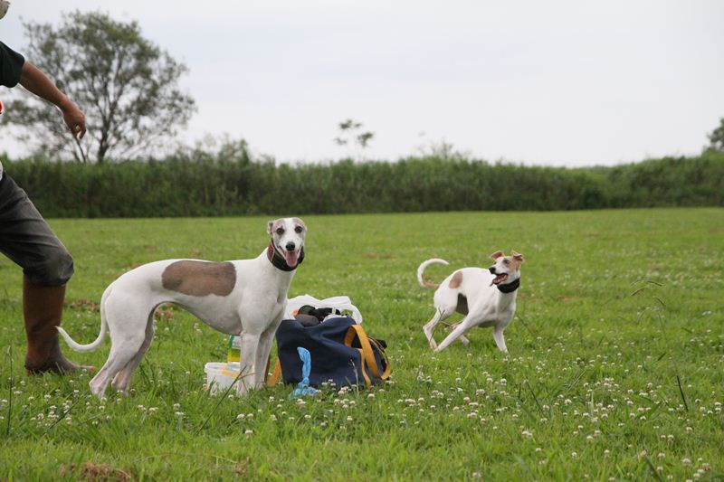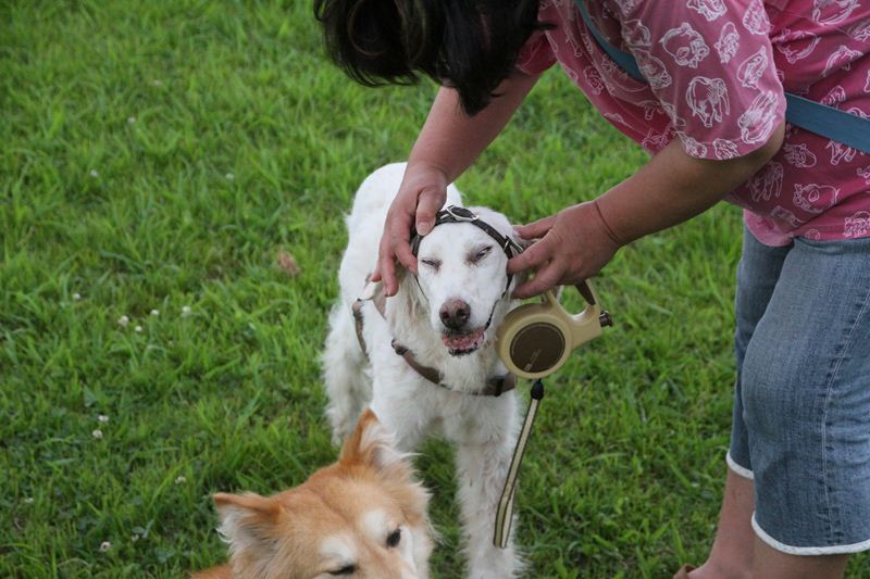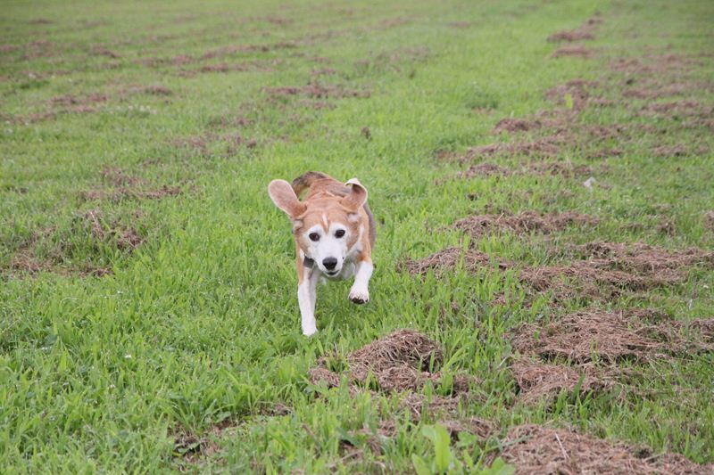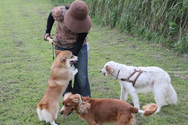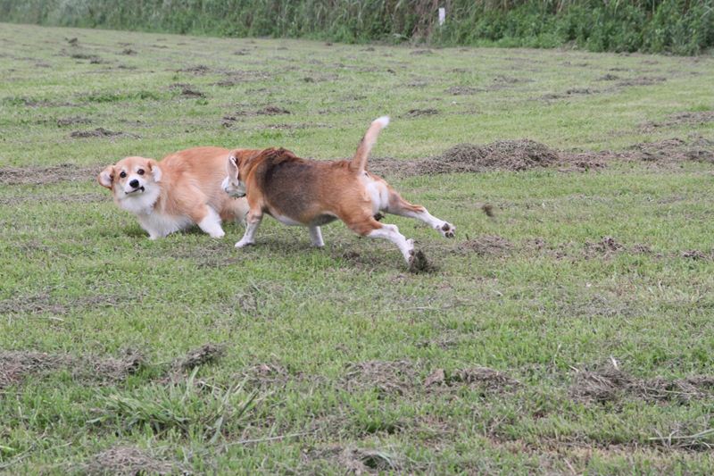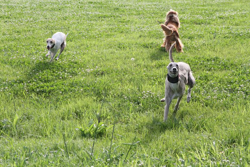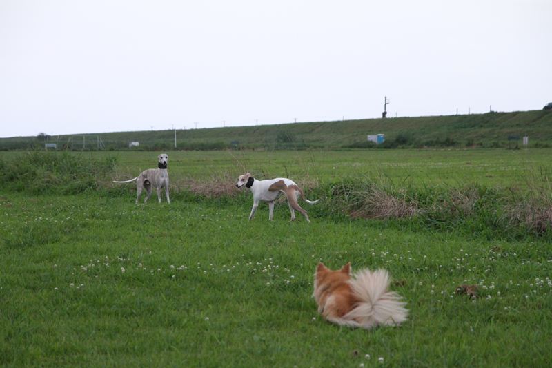 草刈の終わった奥の細道を激走中のきゃら。 |