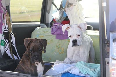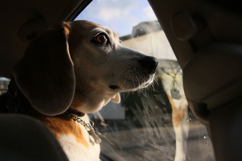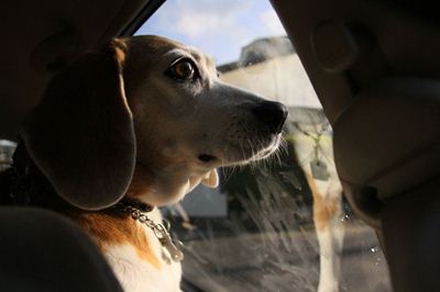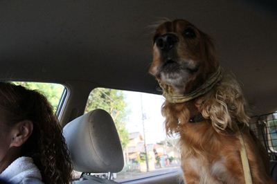 8月1日 車の中のボクちゃん。クンクンワンワンやかましい。 |