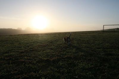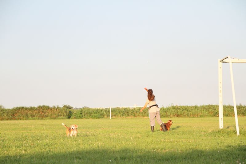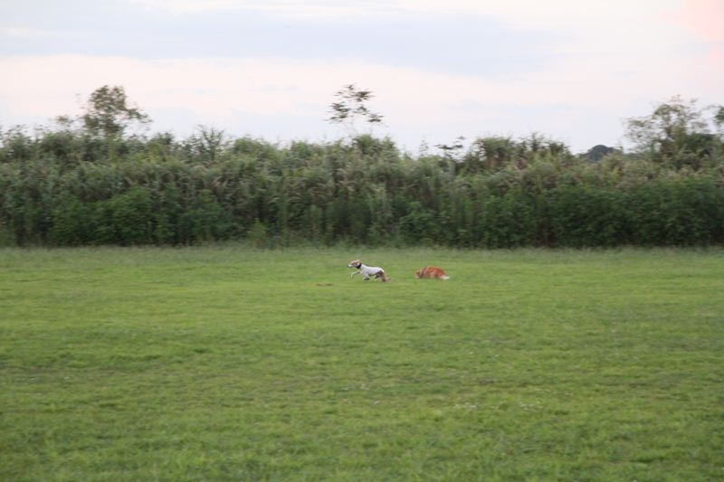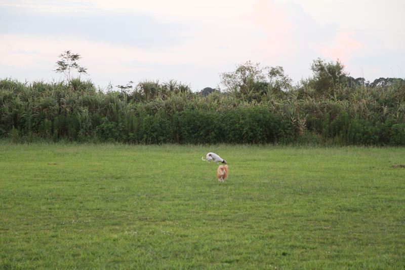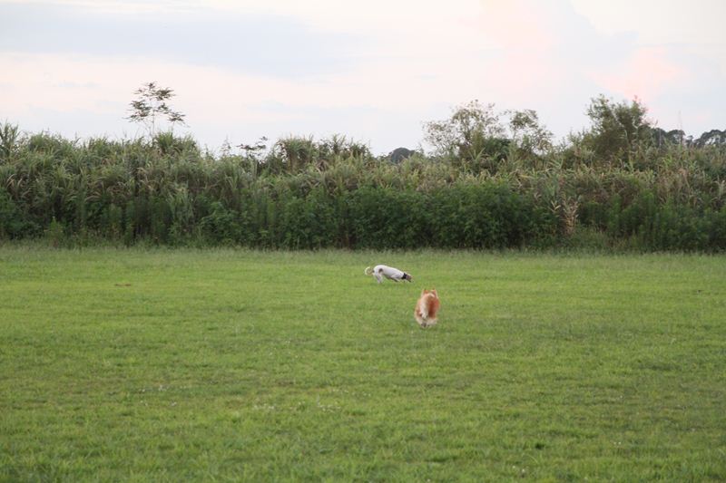 8月5日 朝日に向かってダッシュするきゃら。 |