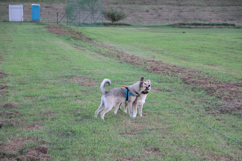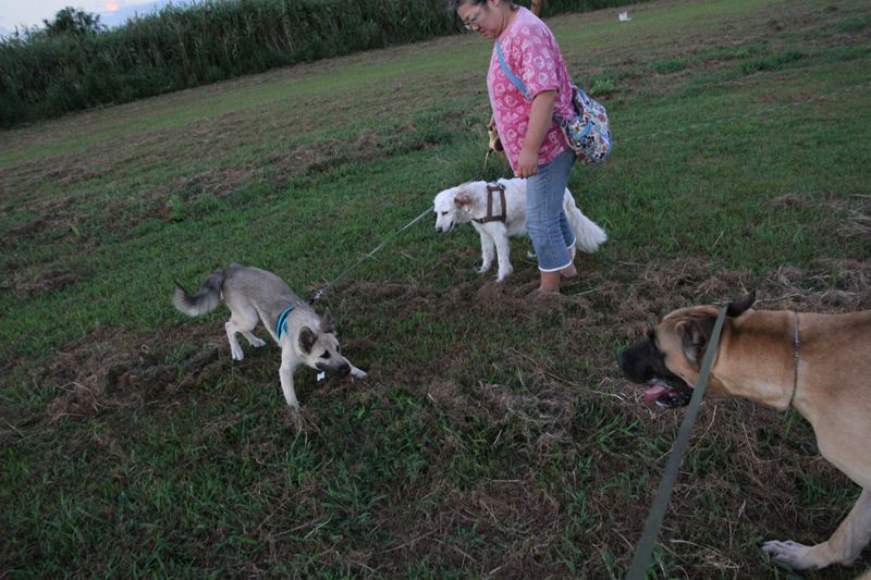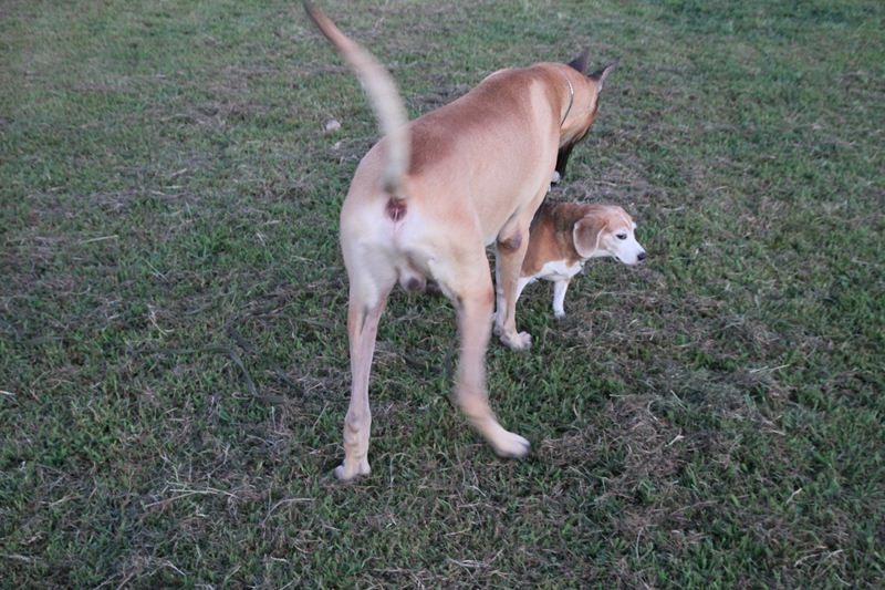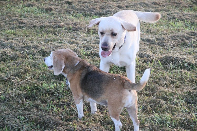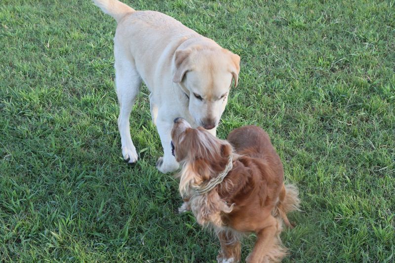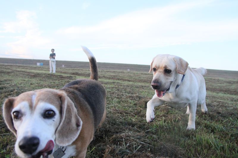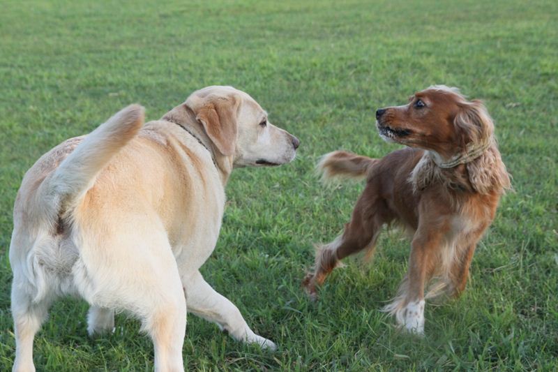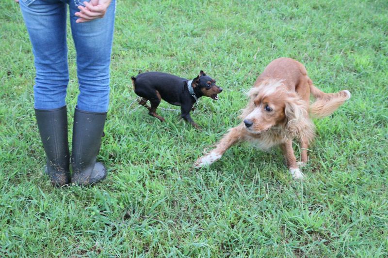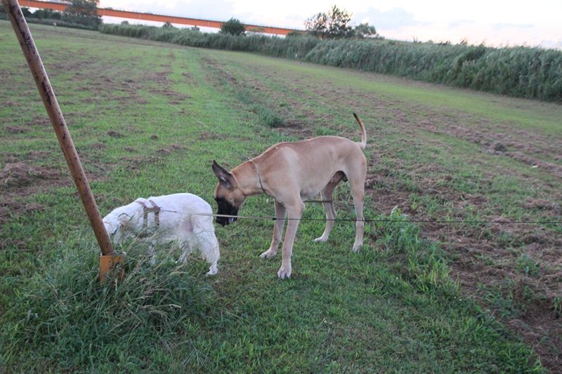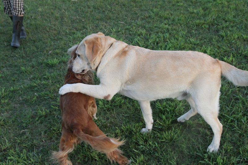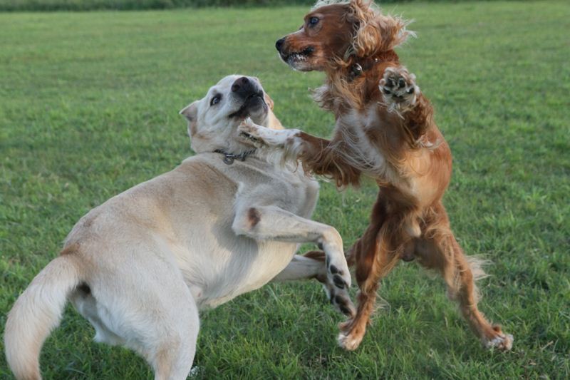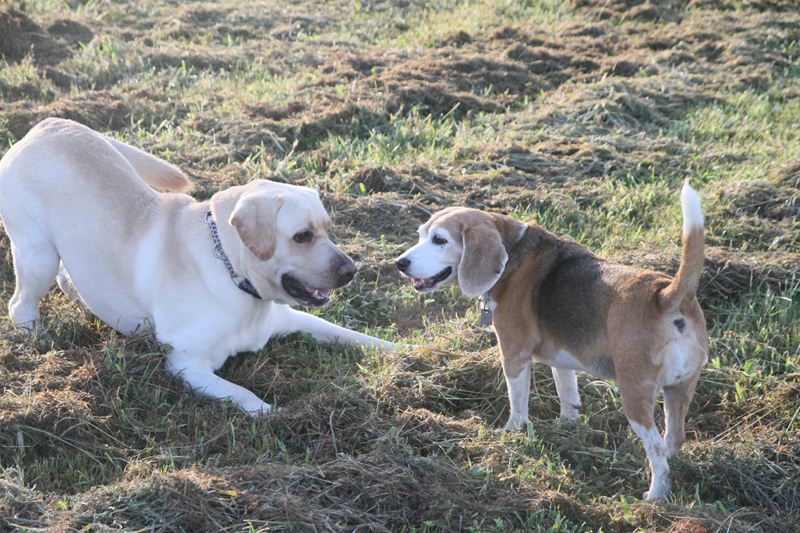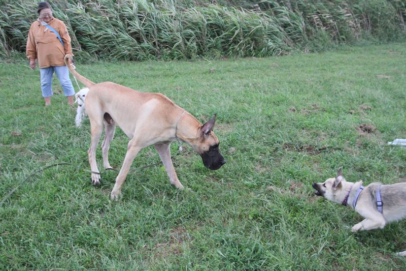 ロミオ君に吠え掛かるラスタ君。 |