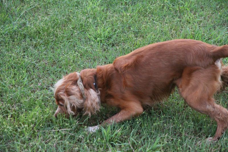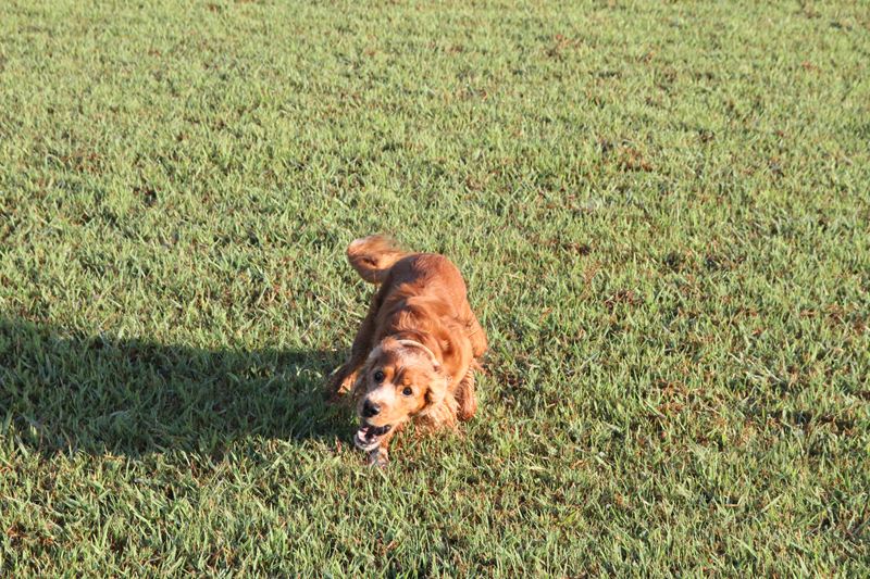 ボクちゃんの勇姿!バッタに向かってダッシュッ! |