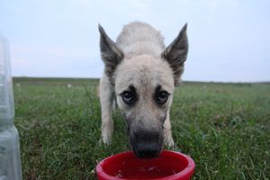 ビビリながら水を飲むラスタ君。 |