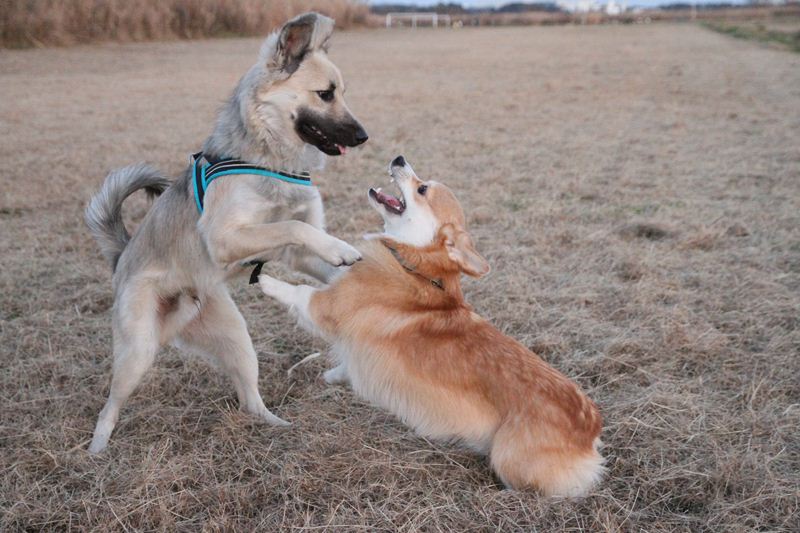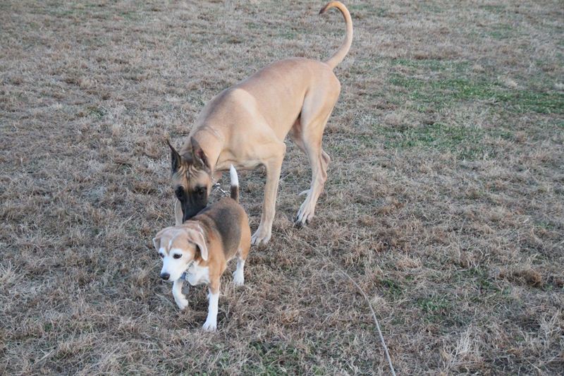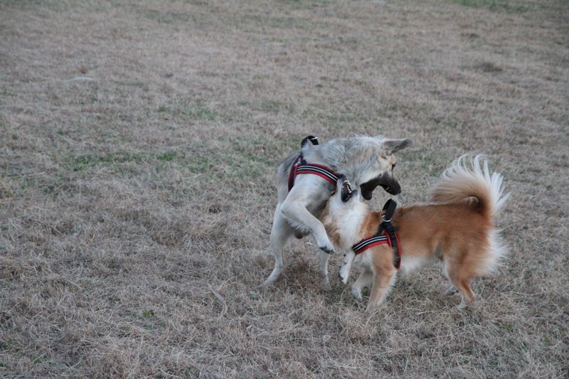 ラスタ君と遊ぶジャック君の図。 |