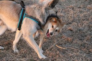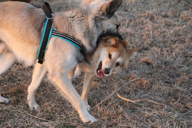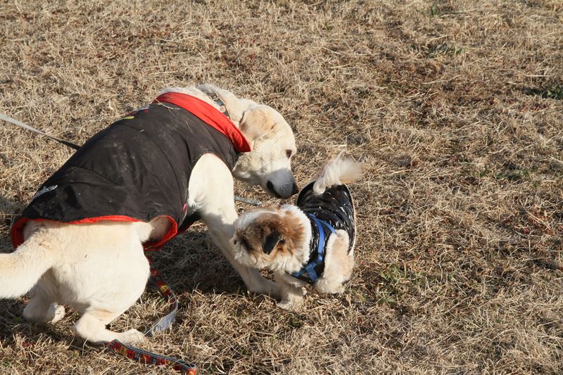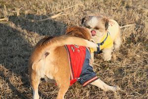 2月23日 ダイスケ君にじゃれるきゃらの図。 |