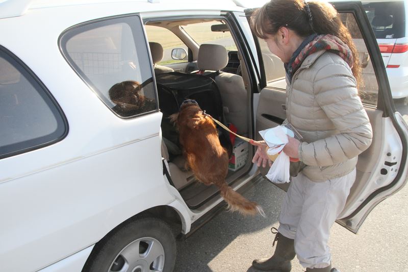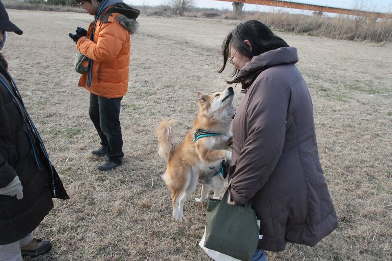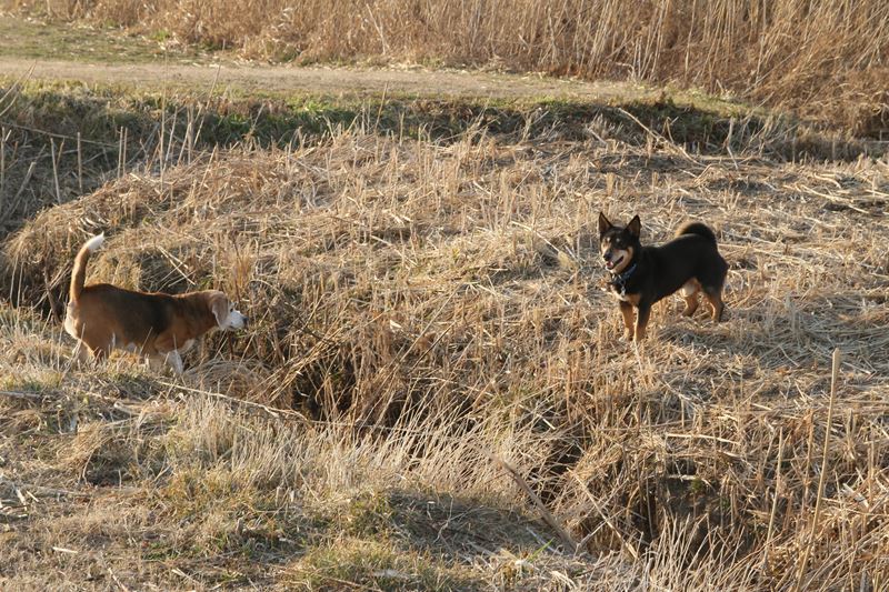 見慣れぬ黒犬さんが登場。 |