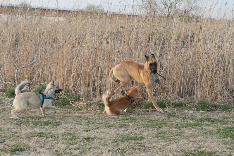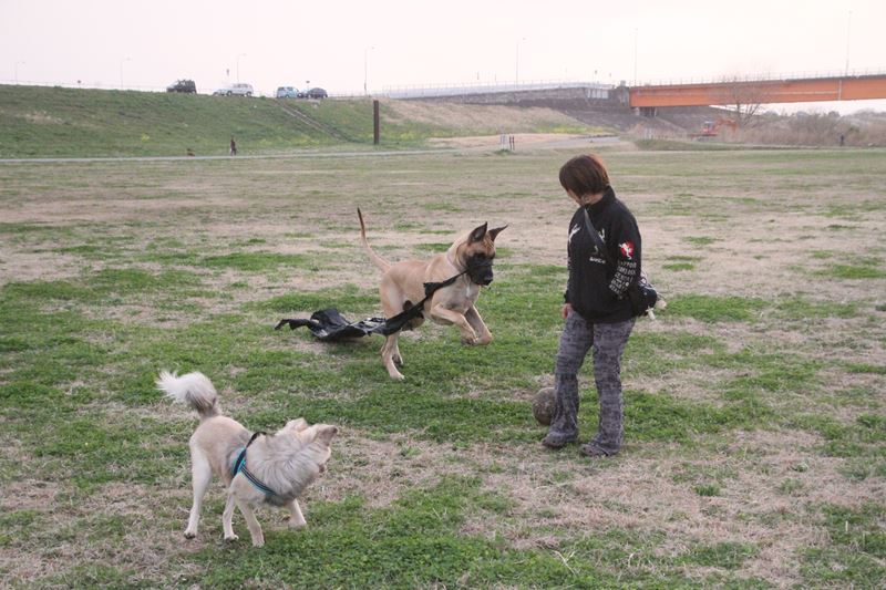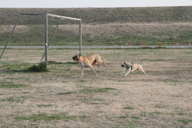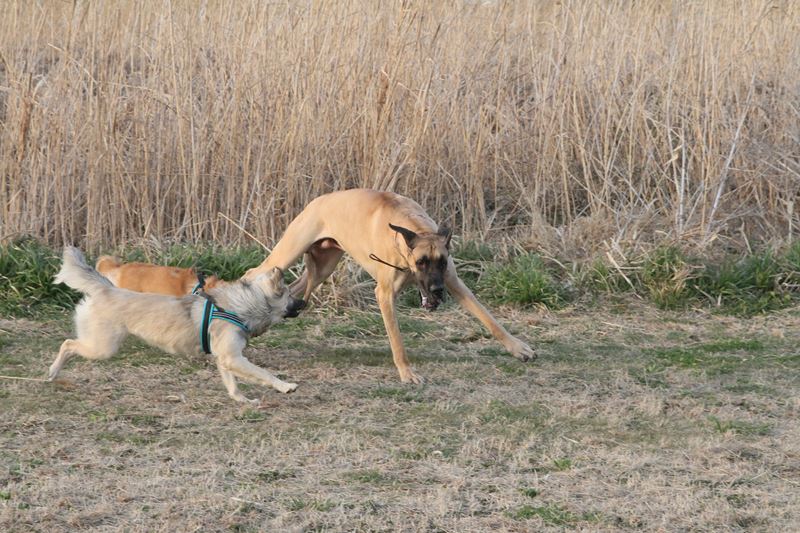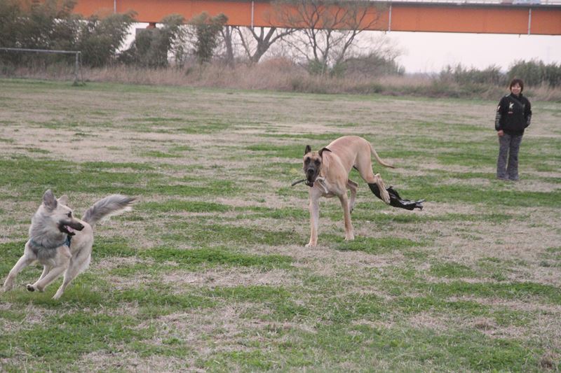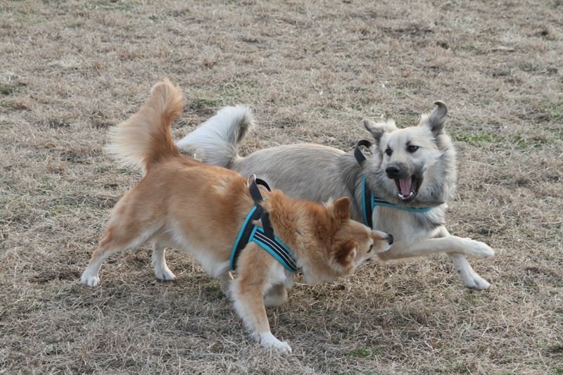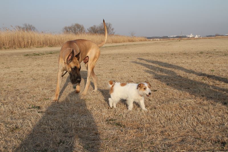 遊び相手ができて大喜びのロミオ君。 |