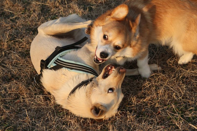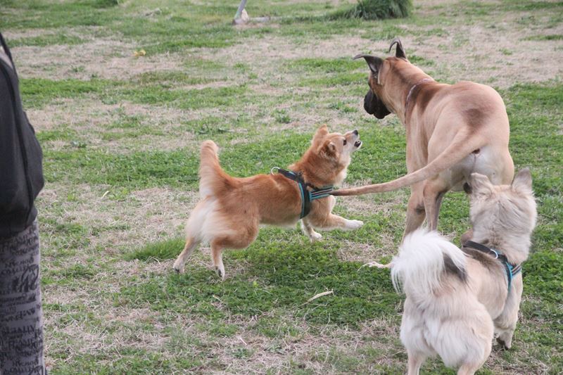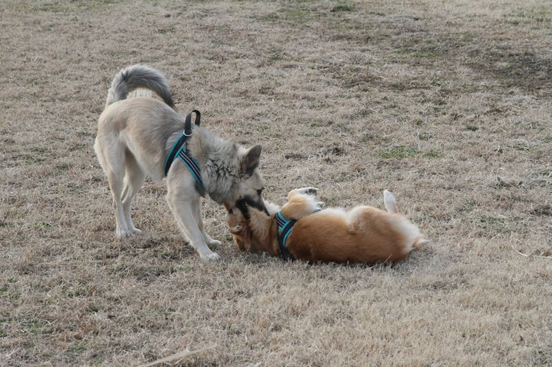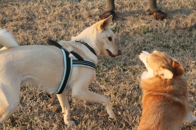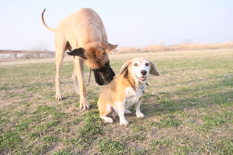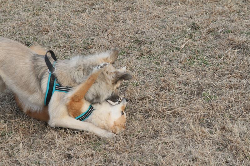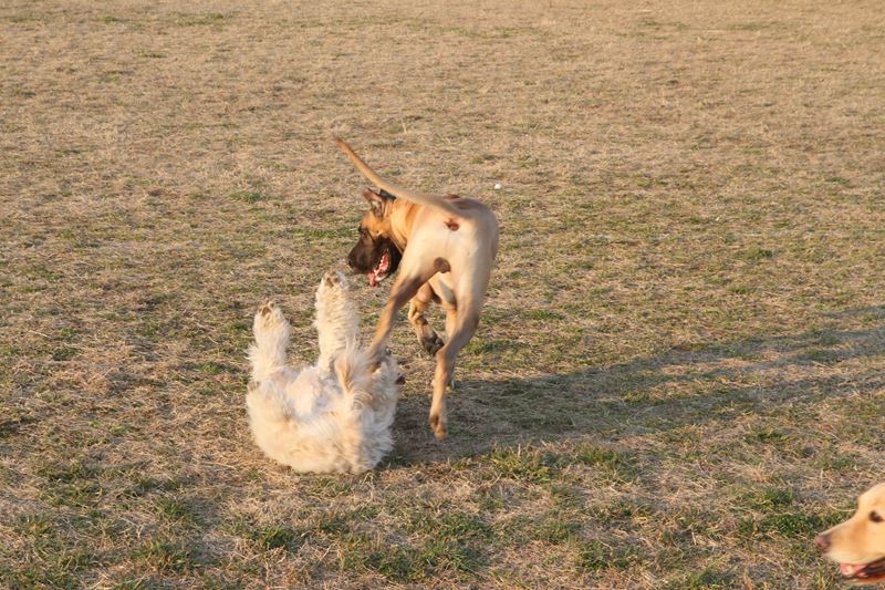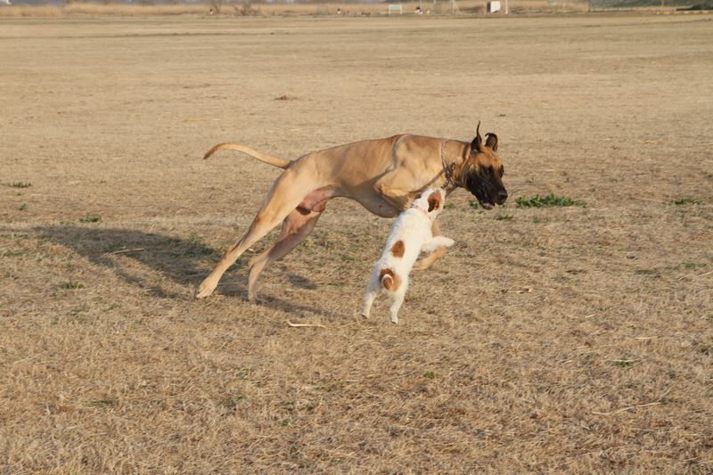 遊び相手ができて大喜びのロミオ君。 |