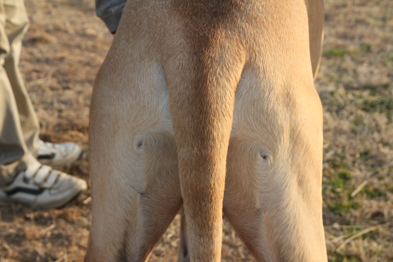 ロミオ君のチャームポイント。お尻のえくぼ。 |