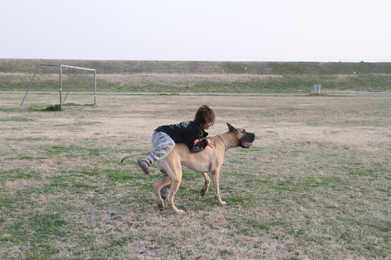 ロミオ君に乗馬ならぬ乗犬中? |