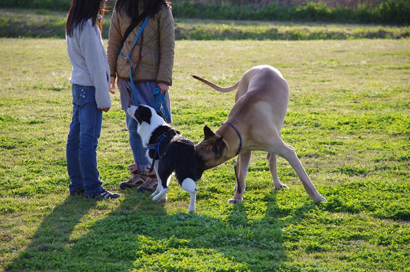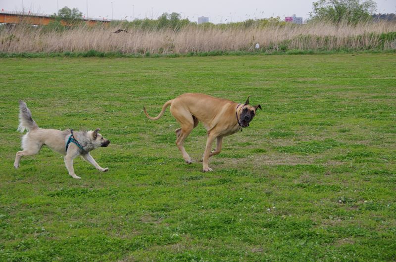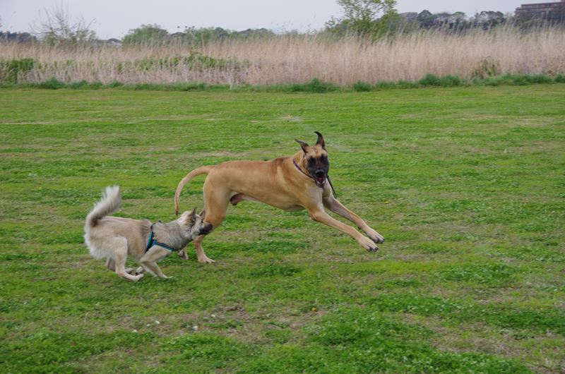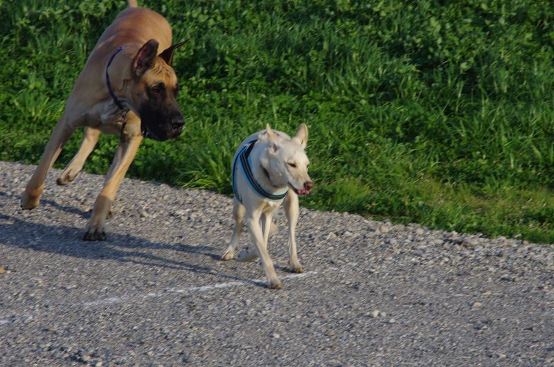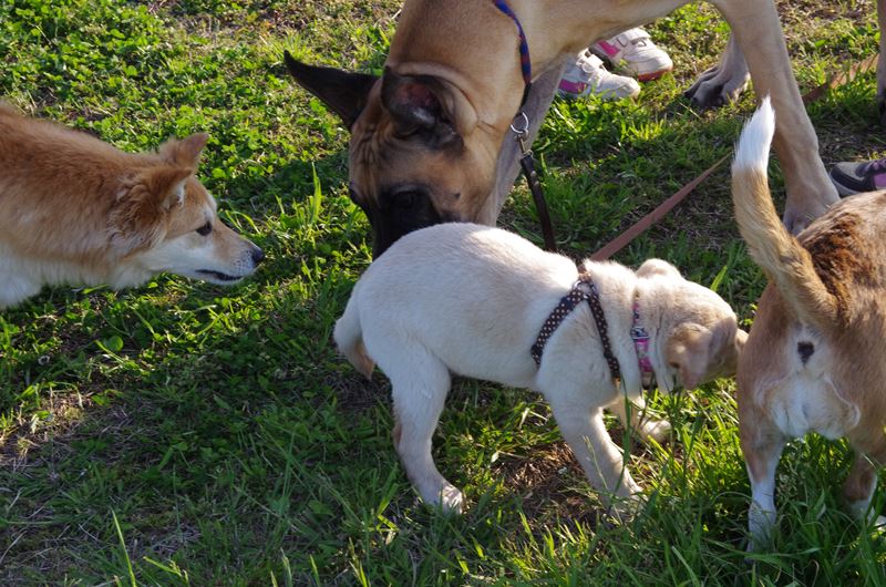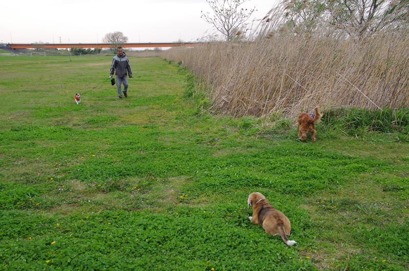 ドーベルマンとマルチーズの混成軍団と遭遇。 |