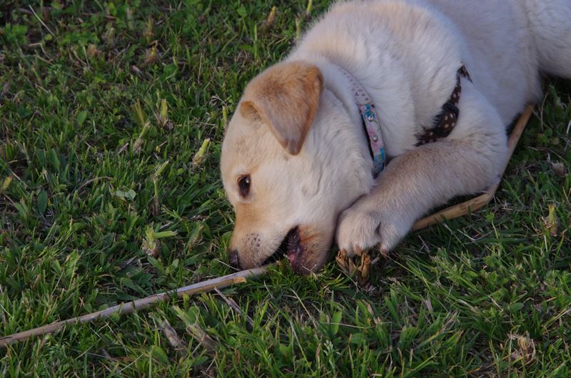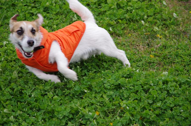 犬じゃらしと遊ぶメロディーちゃん。 |