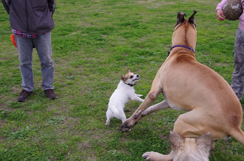 ジャックラッセルさんが大好物の茶色い人登場! |