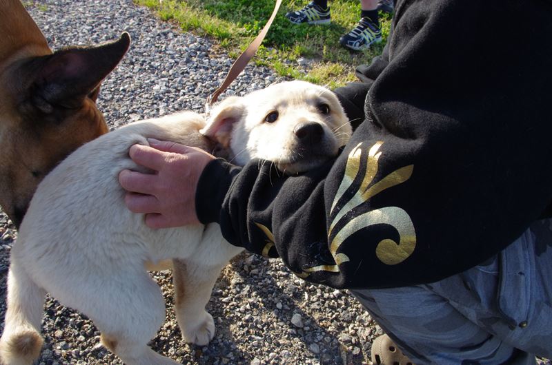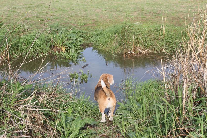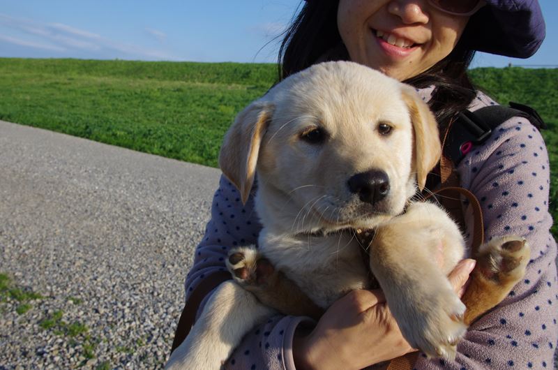 新たに保護されたメロディーちゃんが河原デビュー。 |