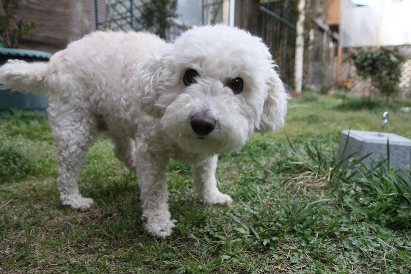 マルチーズMIXさんはちょっとメタボ気味。 |