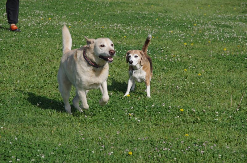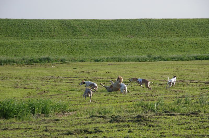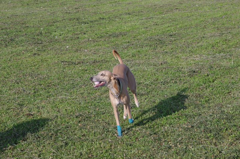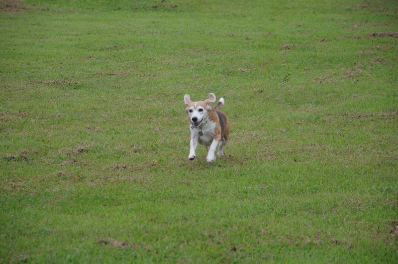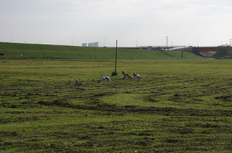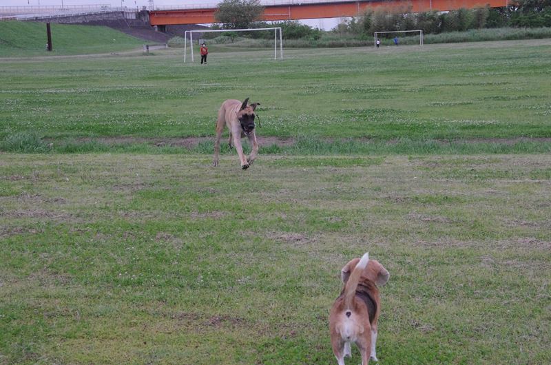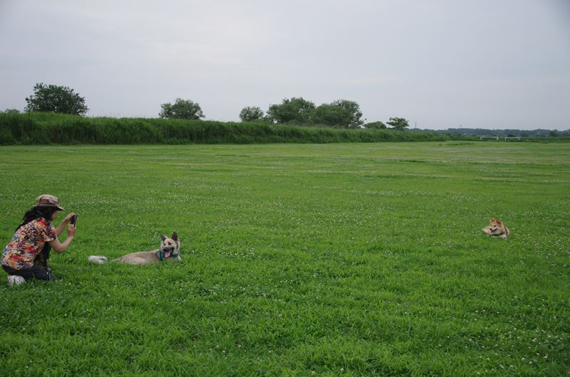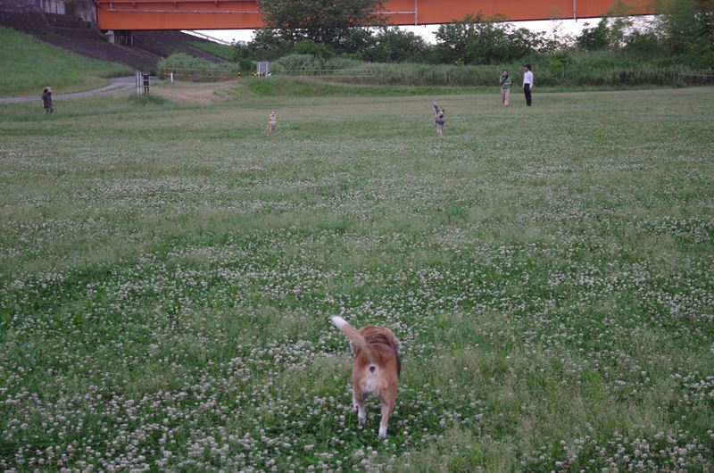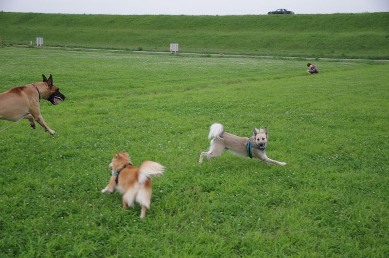 周りを駆け回るラッキー君。 |