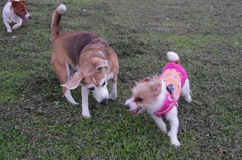 新顔のジャックラッセルナナさんのボディーチェック大会? |