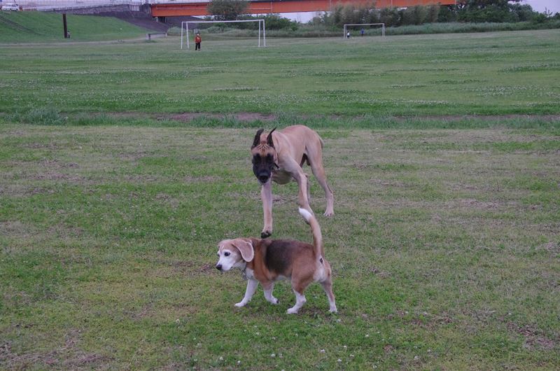ボクの方が胴が長いだろう。 |