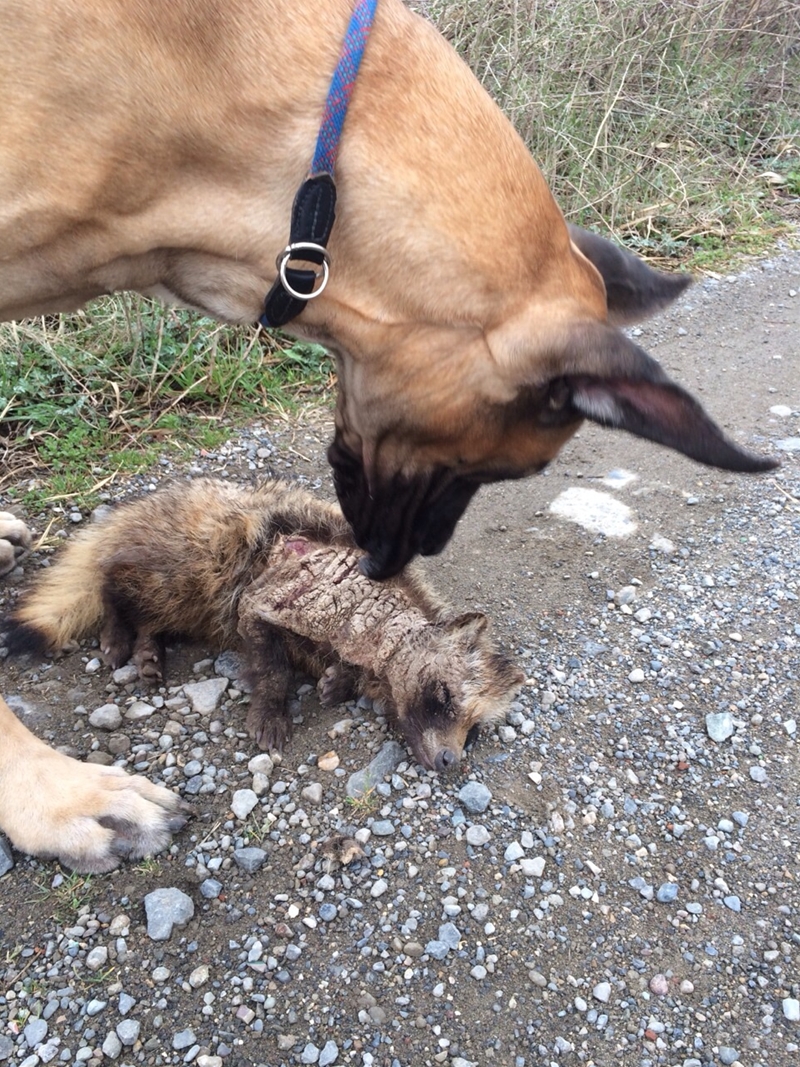 3月27日 今度のたぬきは皮膚病でした。不味そう・・・ |