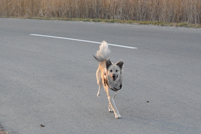 3月16日 橋の向こうの道でラスタに遭遇。 |