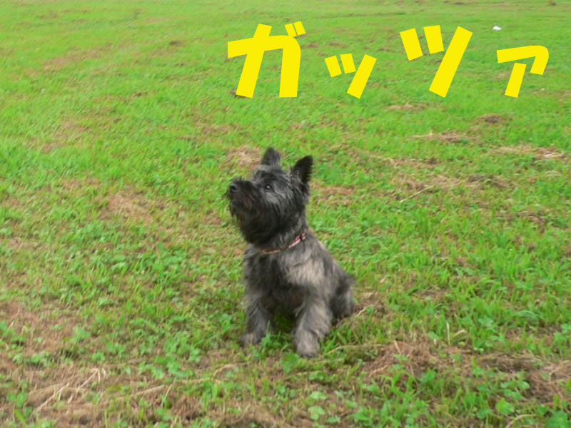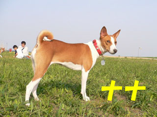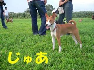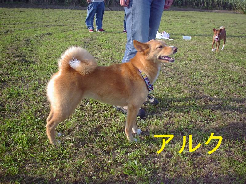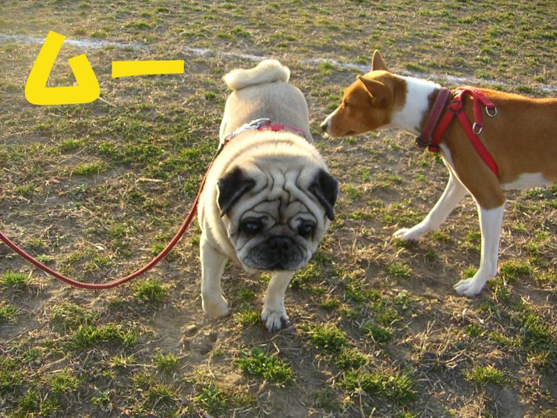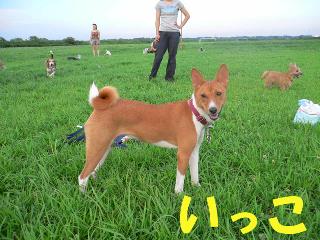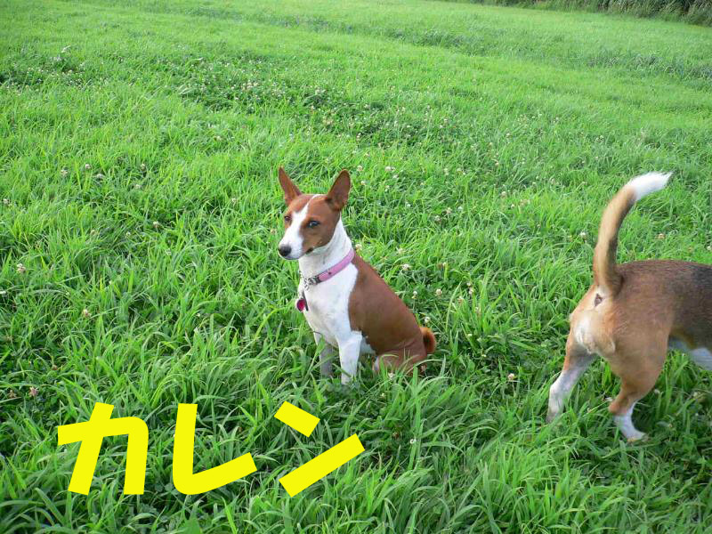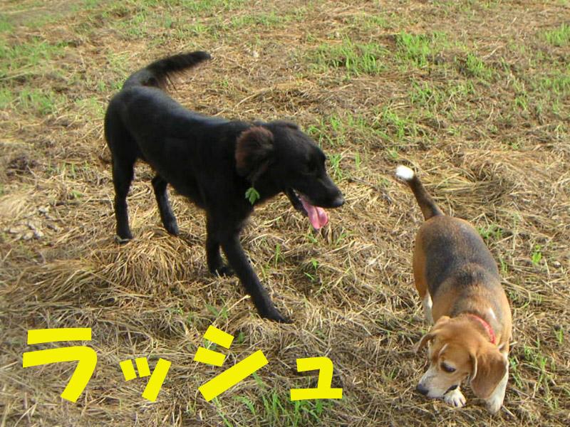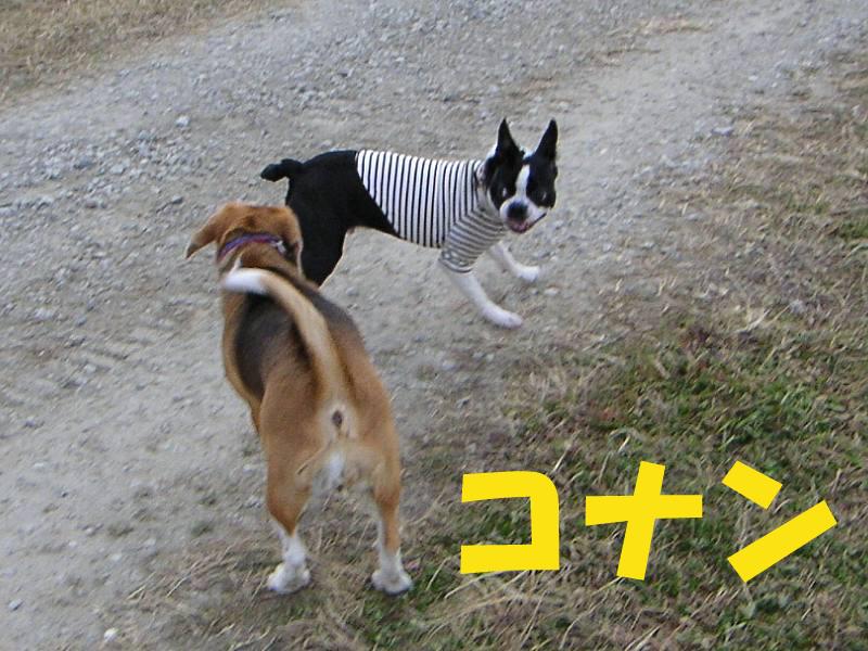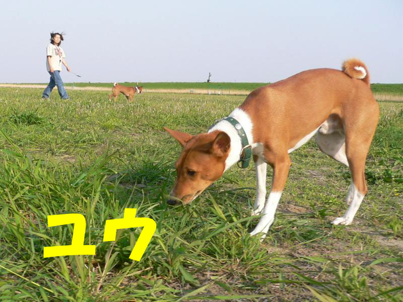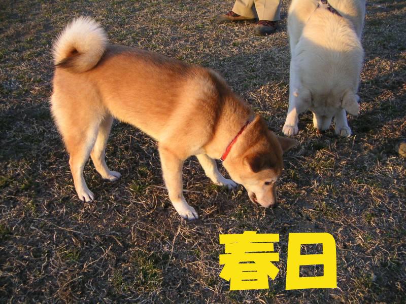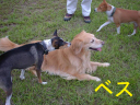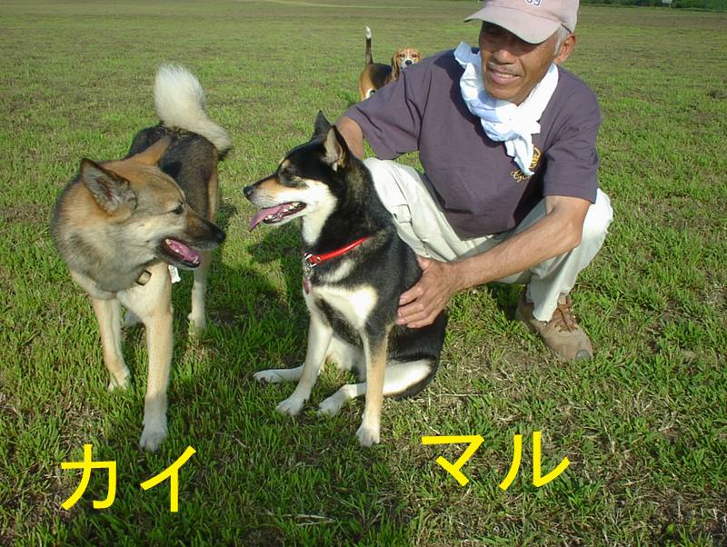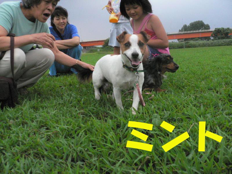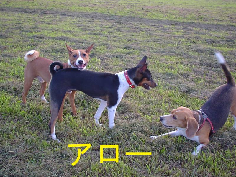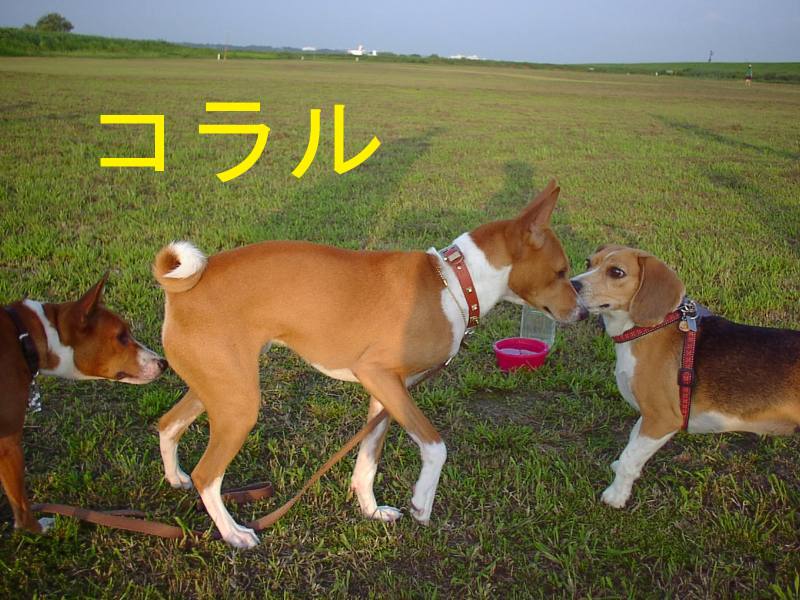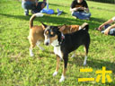 利根川のグランドで一緒に遊んでいるわんちゃんたちの写真です。